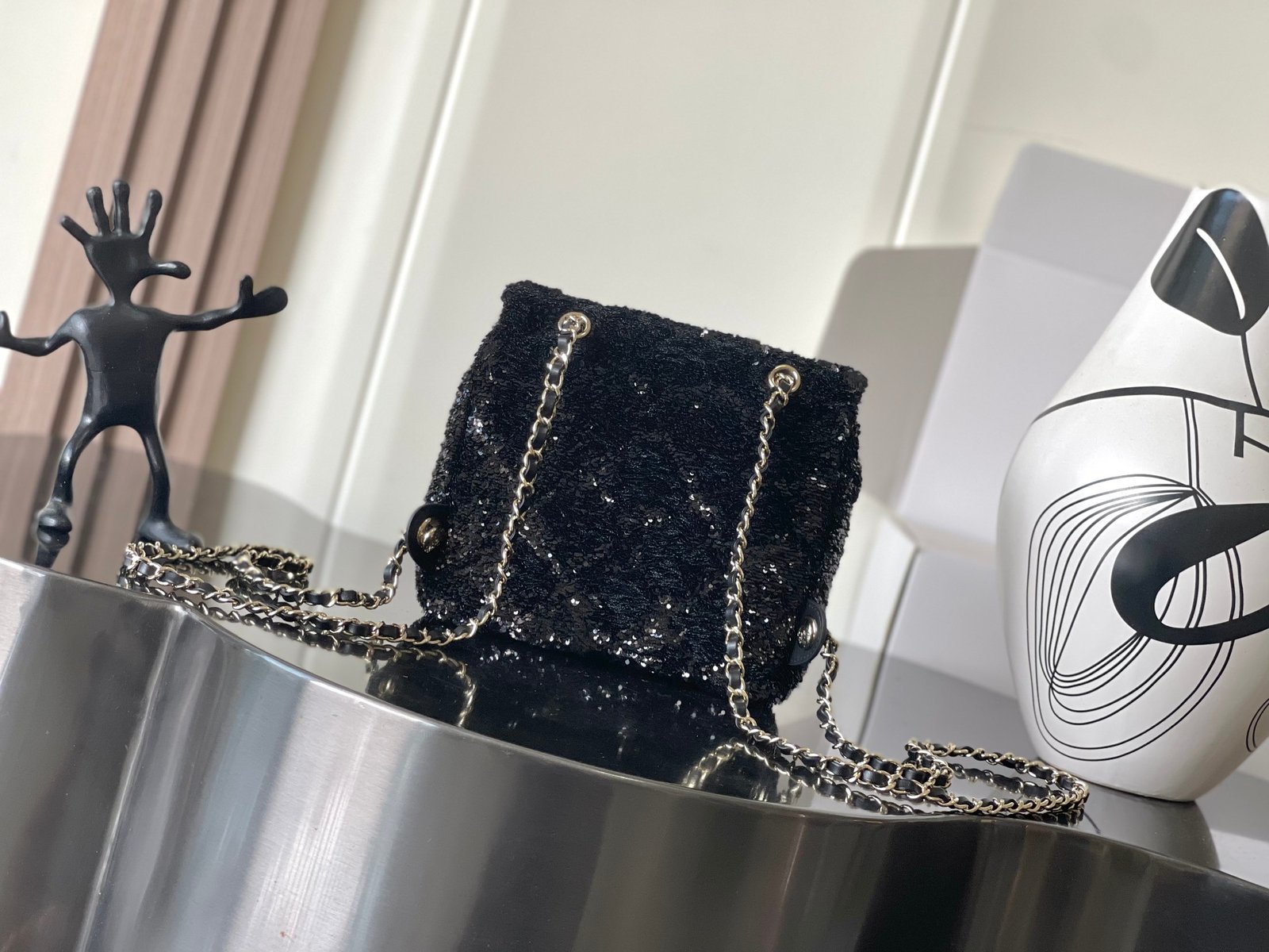 25K Sequin Fabric Mini Backpack (21cm) with Polished Gold-Tone Hardware