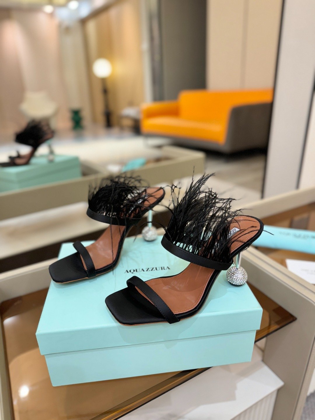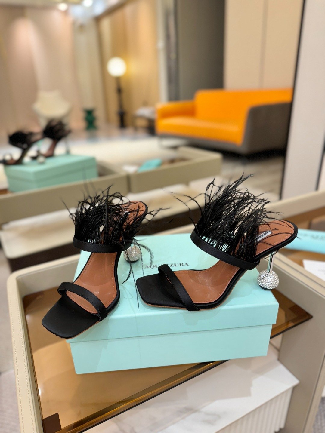 & Free Shipping- Series: Feather-Embellished Spherical Heel Sandal Collection