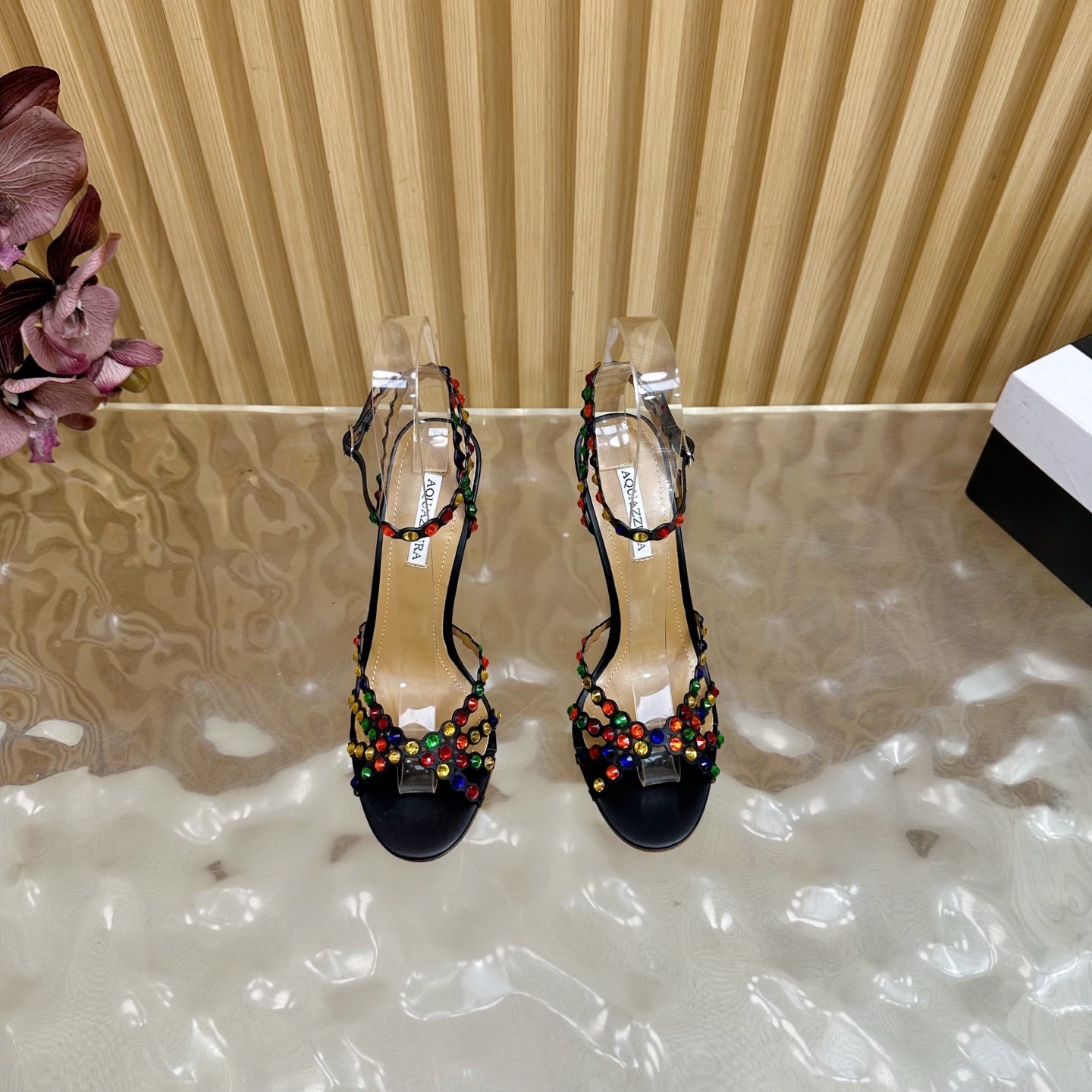 AQUAZZURA Multicolor Crystal-Embellished PVC & Leather Peep-Toe Stiletto Sandals, 10cm