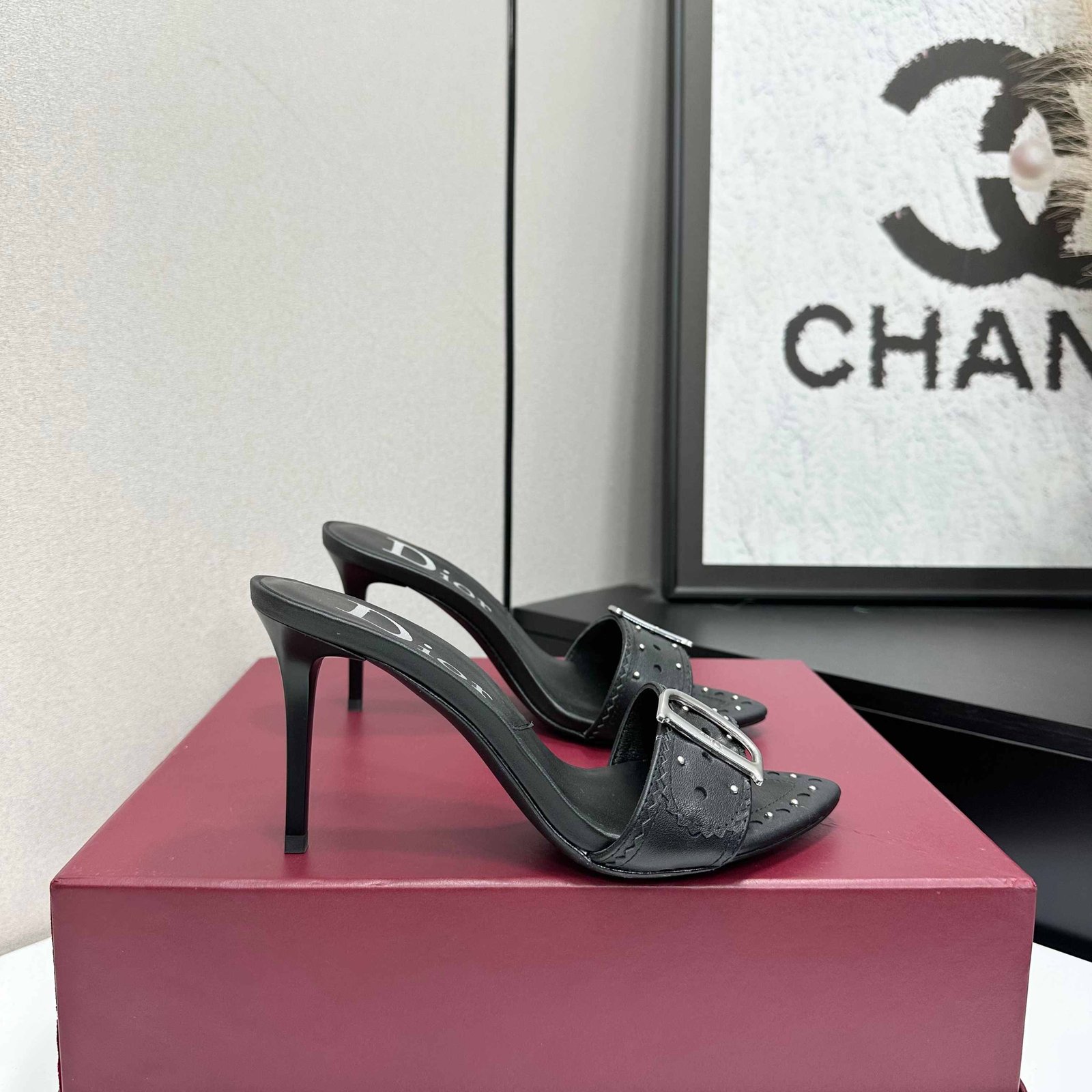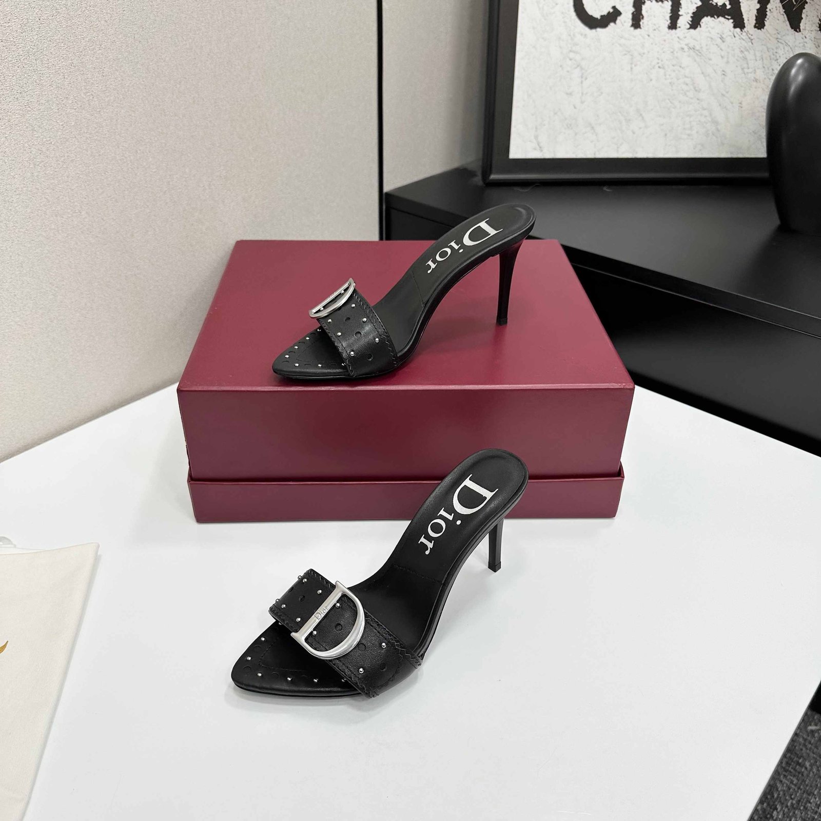& Free Shipping- Series: Embossed Leather Buckle Stiletto Mule Pump Collection