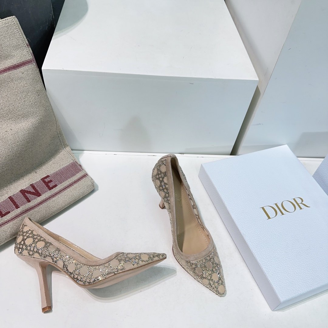 Christian Dior Oblique Crystal-Embellished Mesh Pointed-Toe PumpsChristian Dior Oblique Crystal-Embellished Mesh Pointed-Toe Pumps