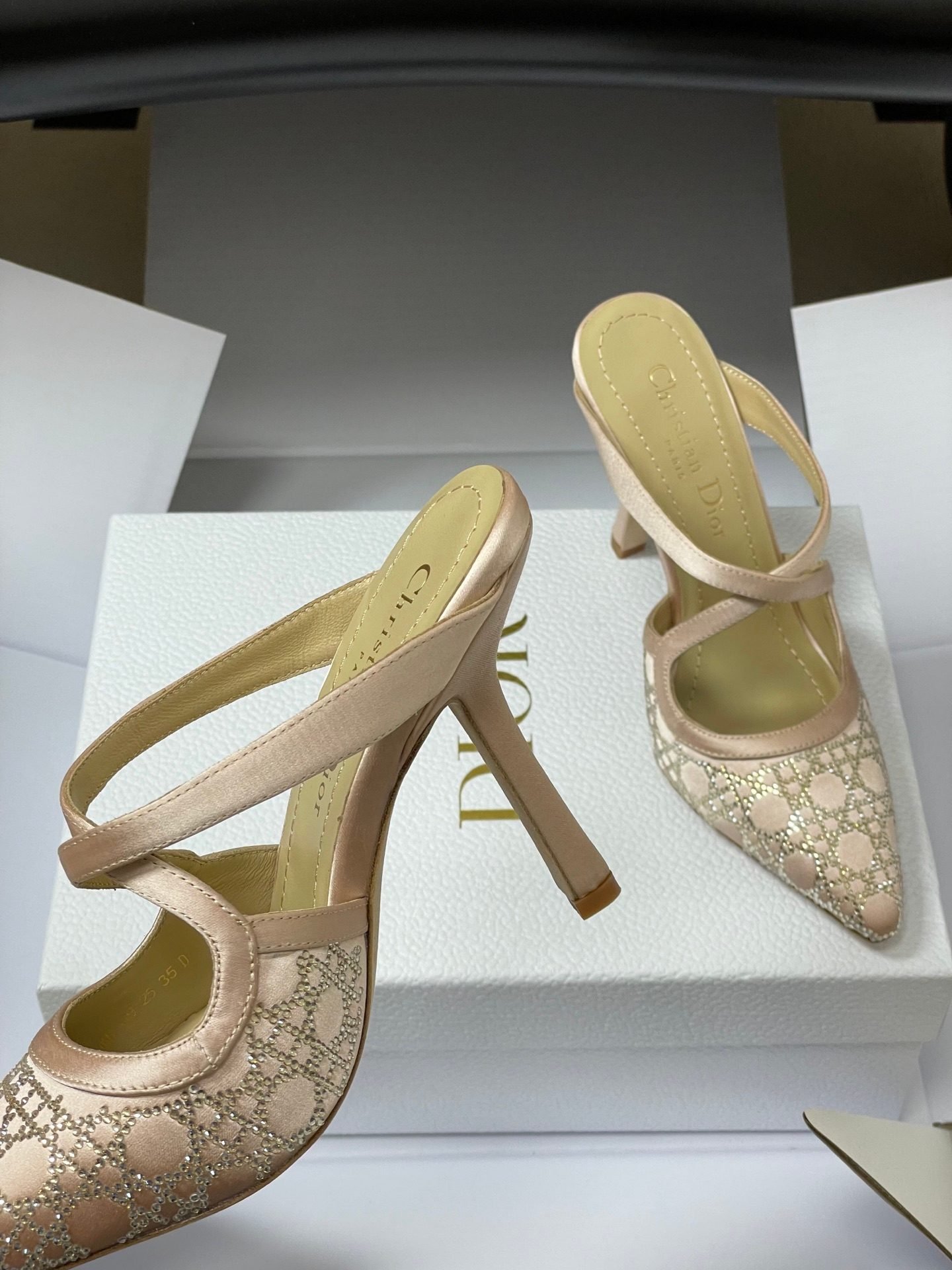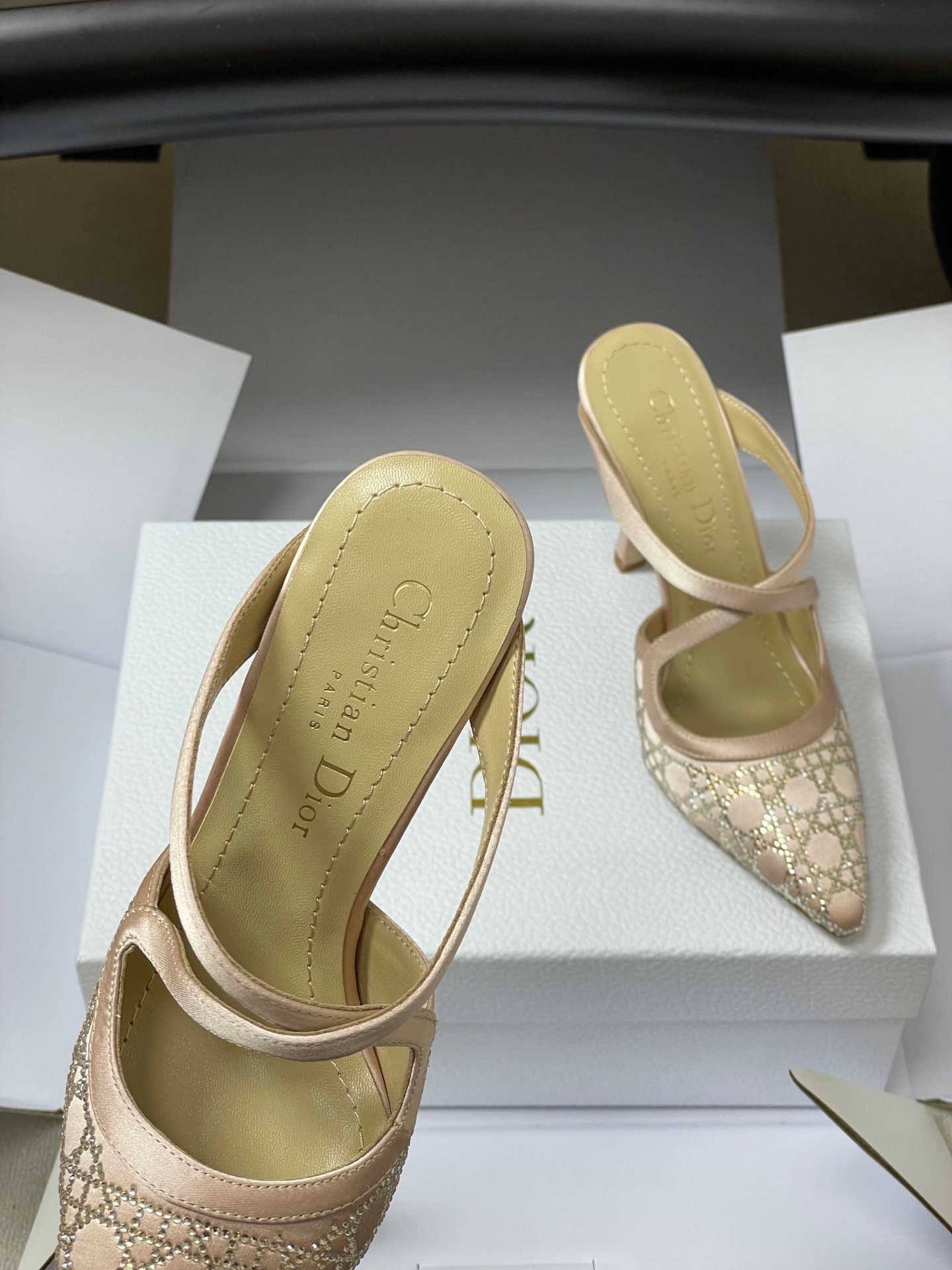 Christian Dior Oblique Crystal-Embellished Satin Pointed-Toe Mule Pumps with Cross Ankle Straps, 9.5cm