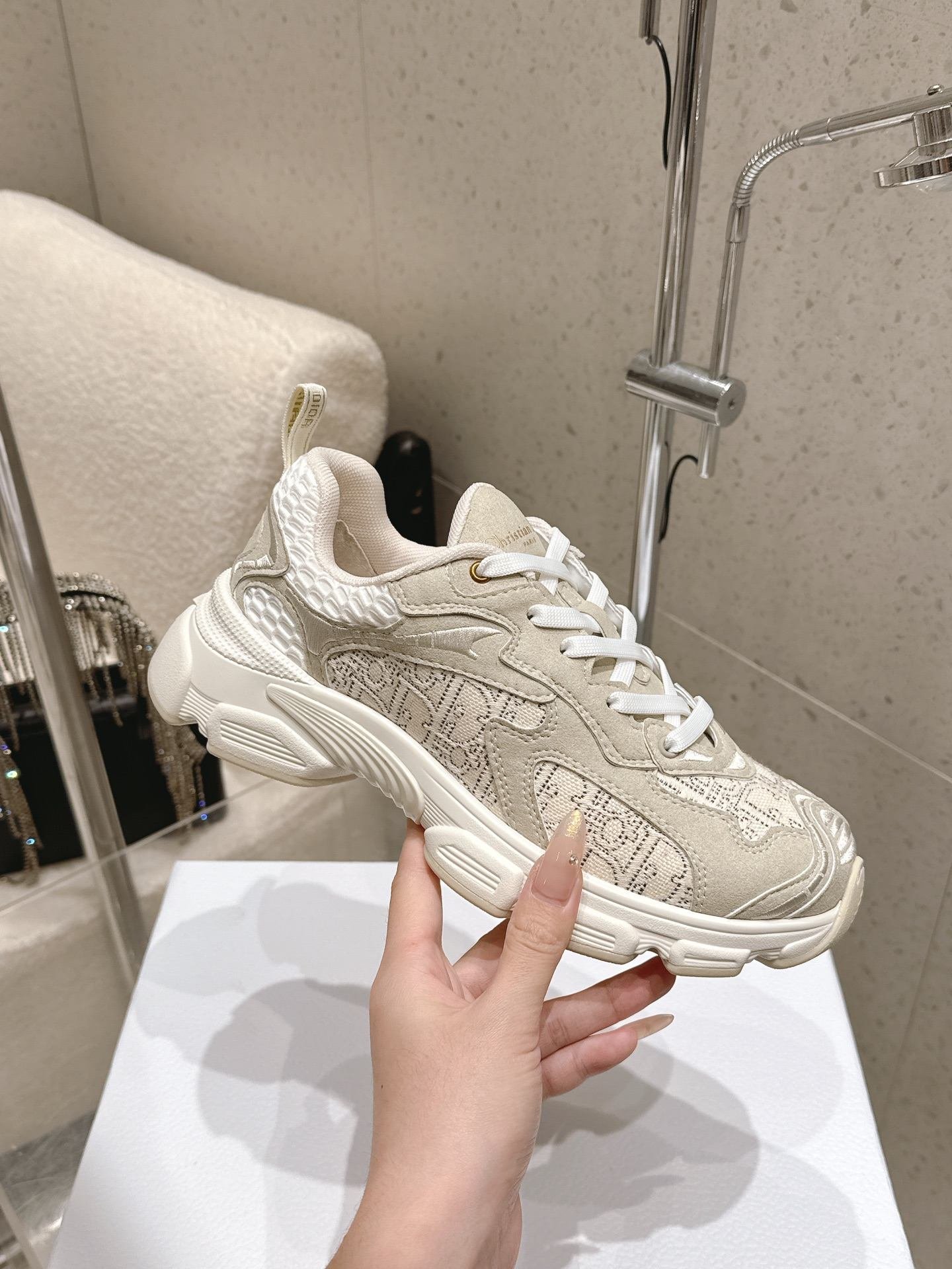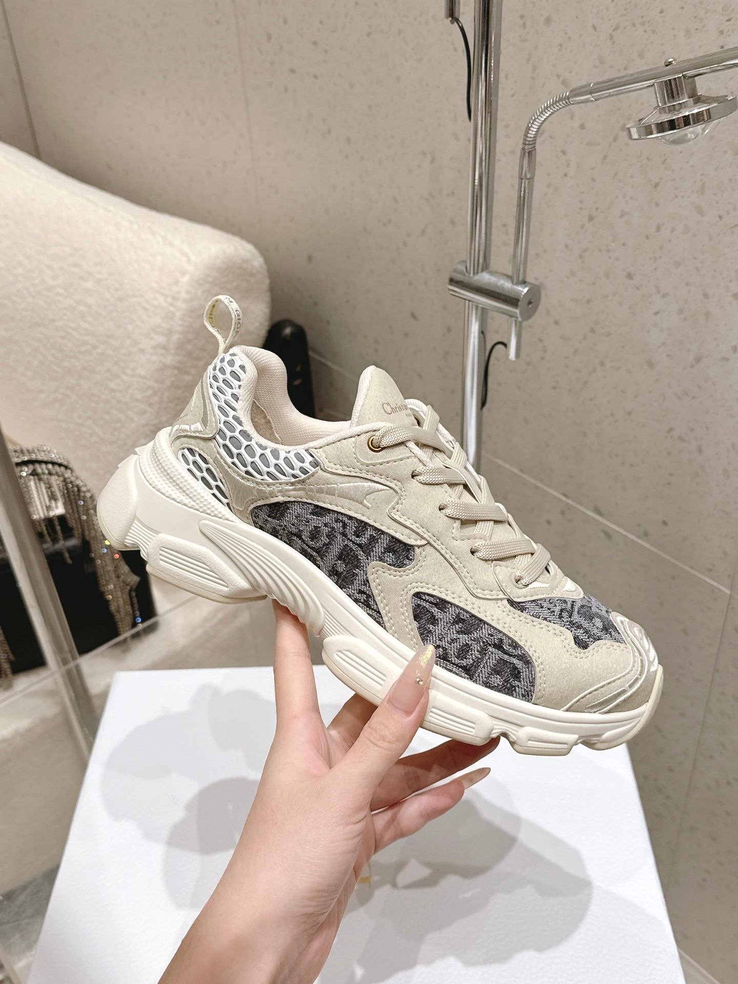 • Material: Light beige suede and mesh upper with Oblique-patterned embellishments, white laces, leather lining and insole, chunky rubber outsole