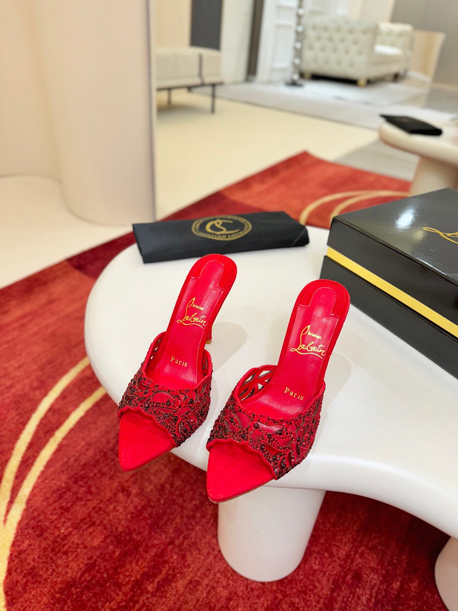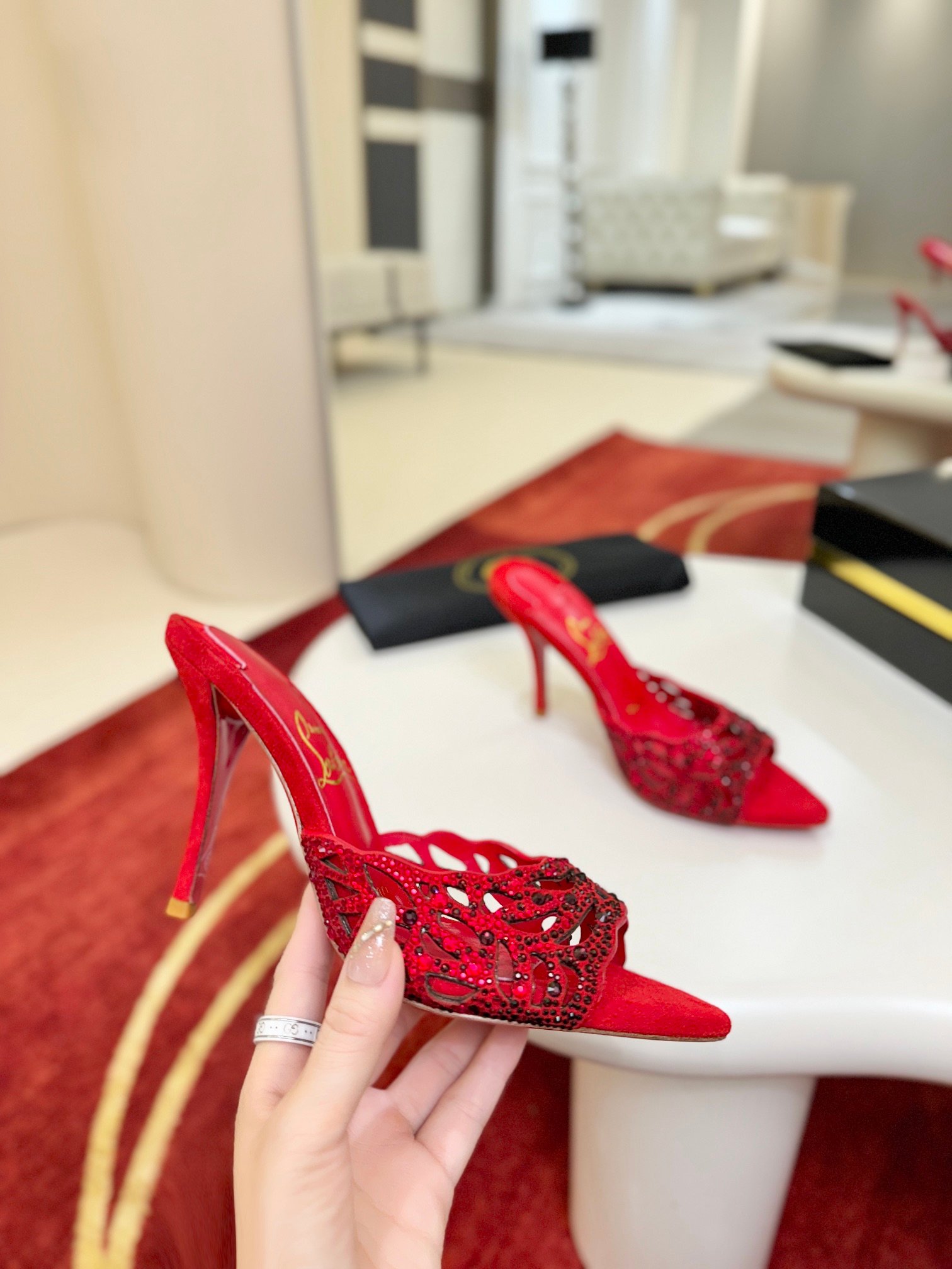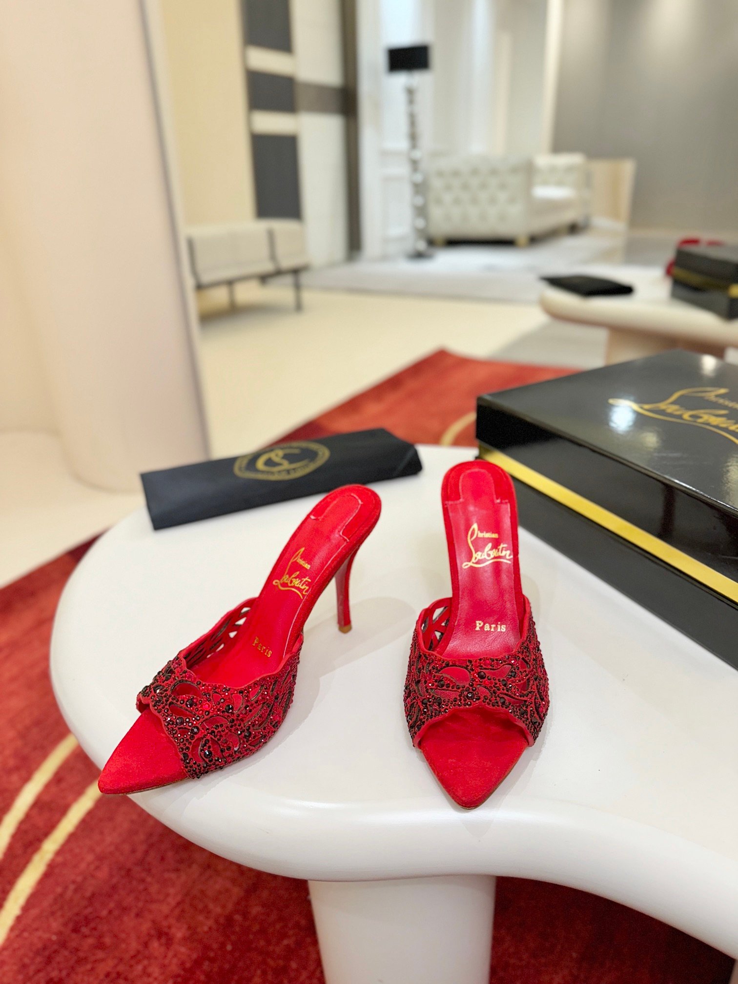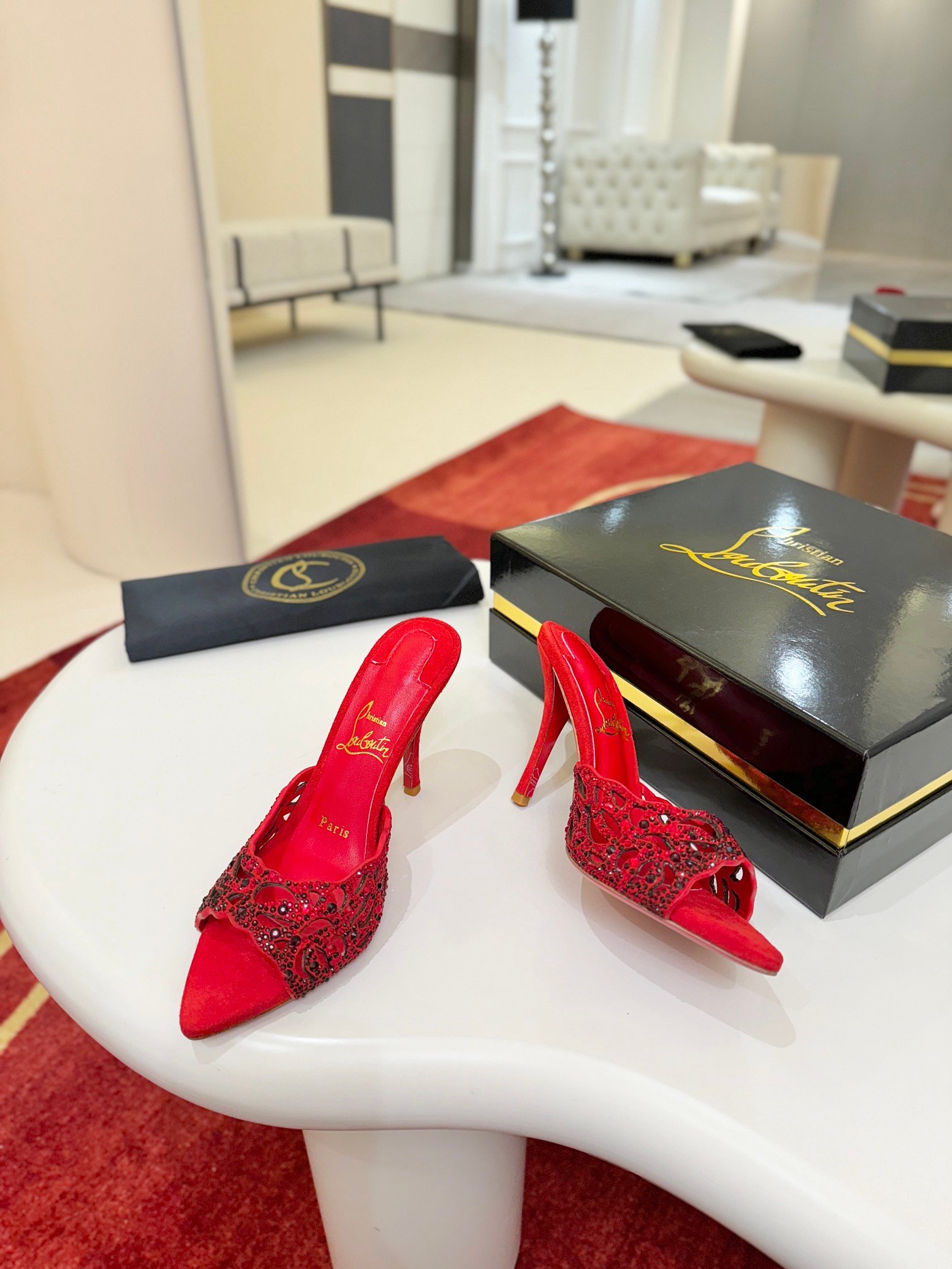 & Free Shipping- Series: Christian Louboutin Black Suede Crystal Mule