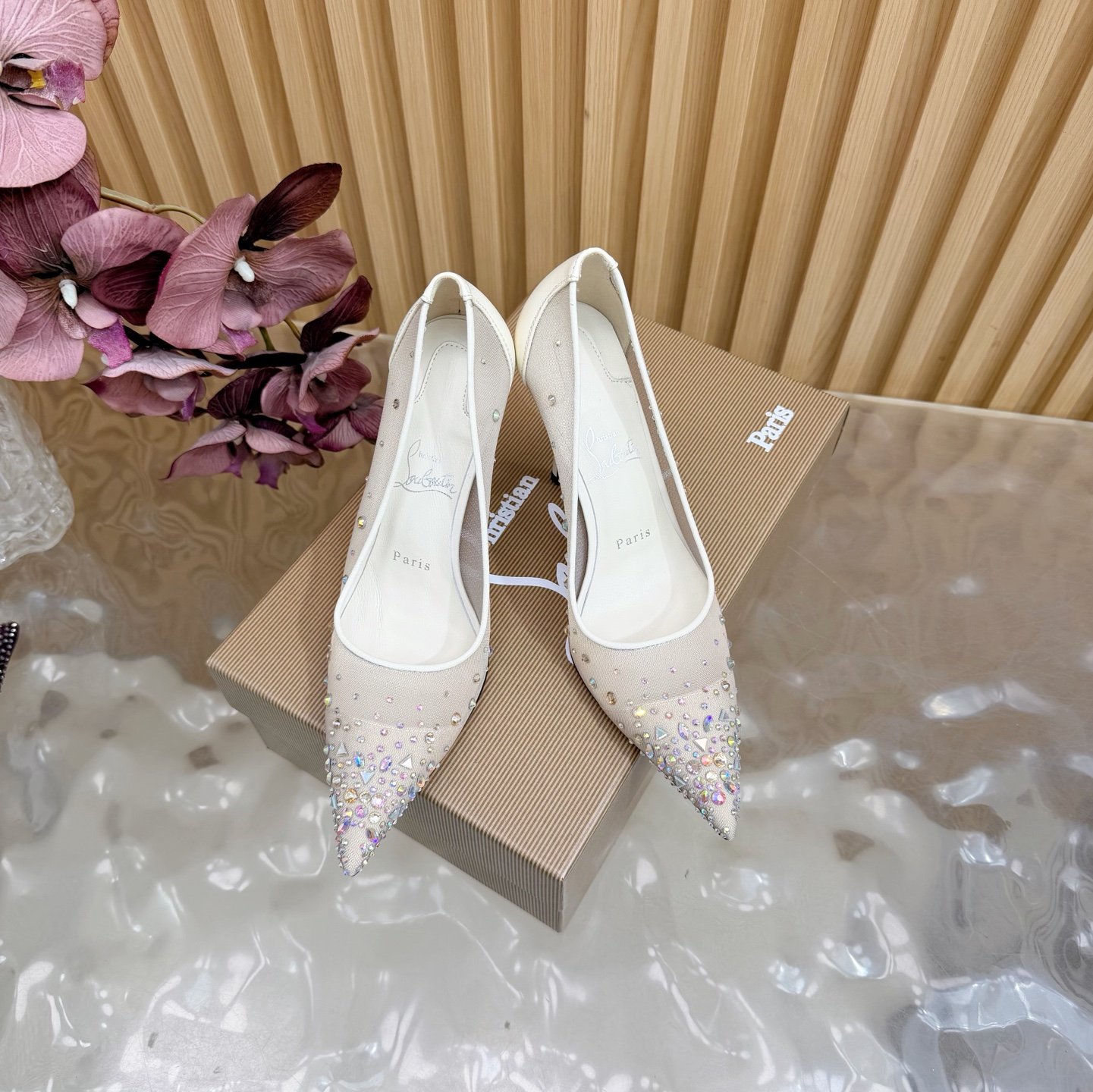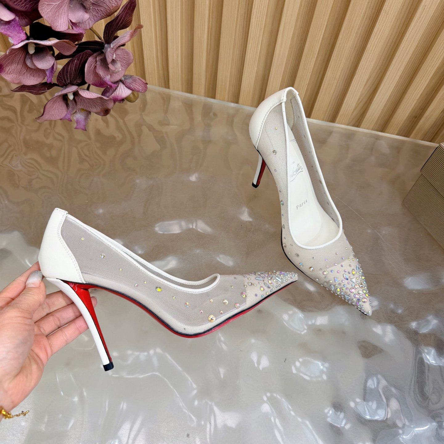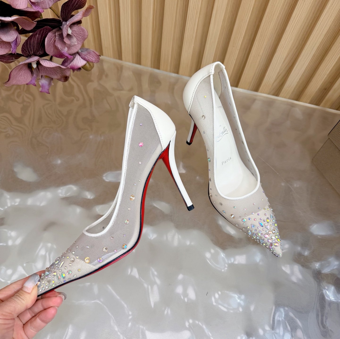 & Free Shipping- Series: Christian Louboutin Crystal Mesh Pump
