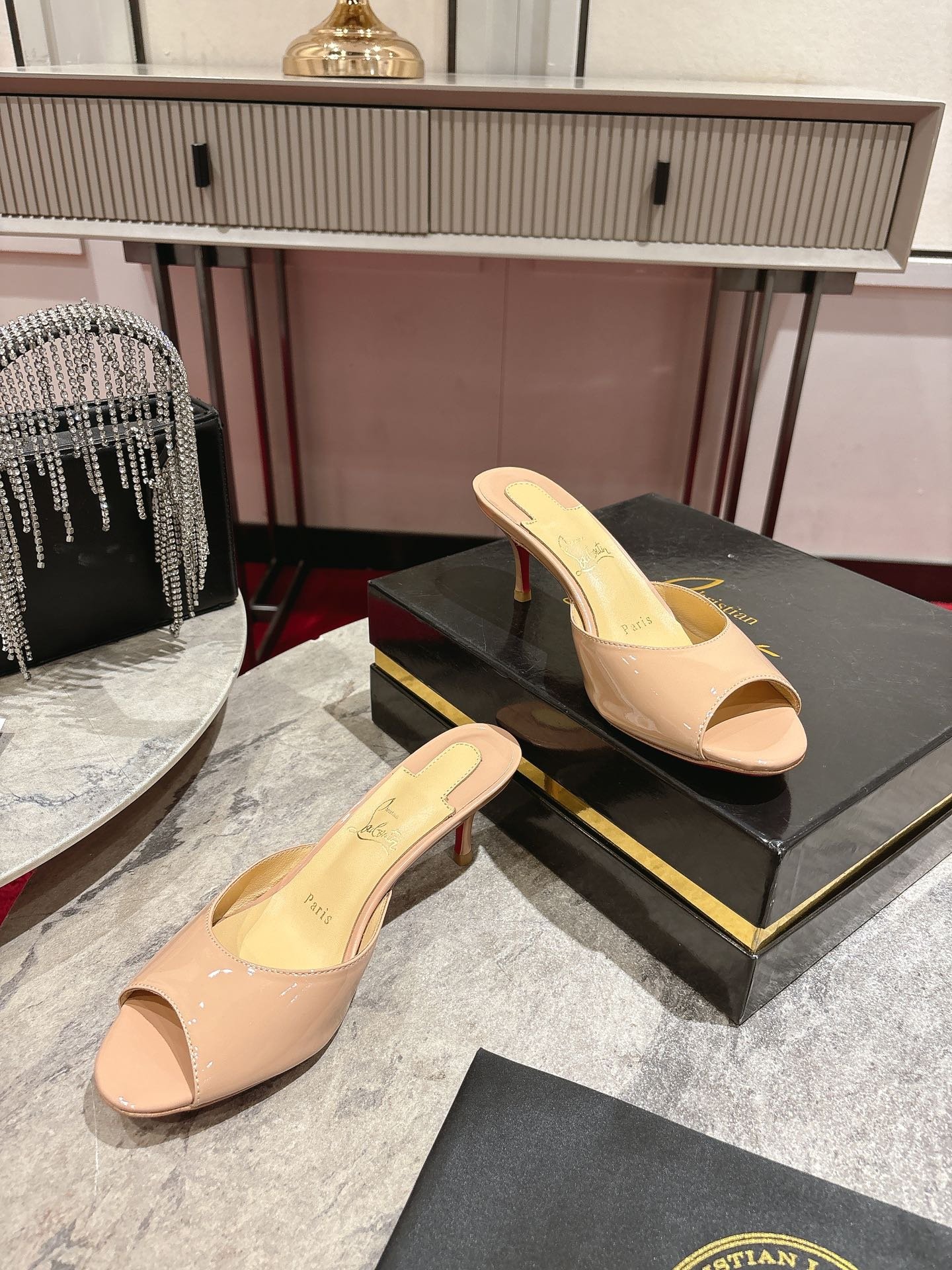 • Series: Christian Louboutin Nude Patent Clear Strap Slide