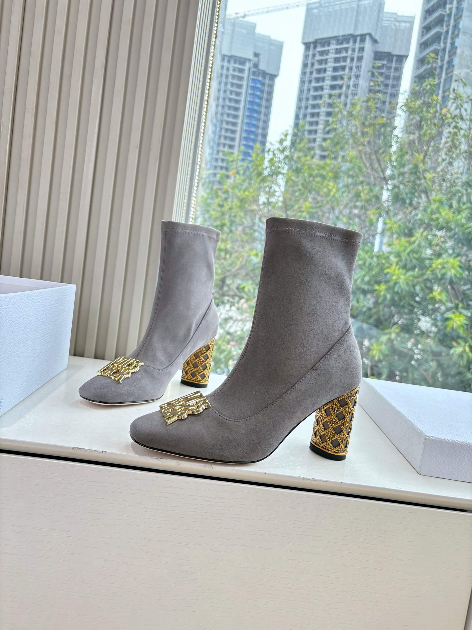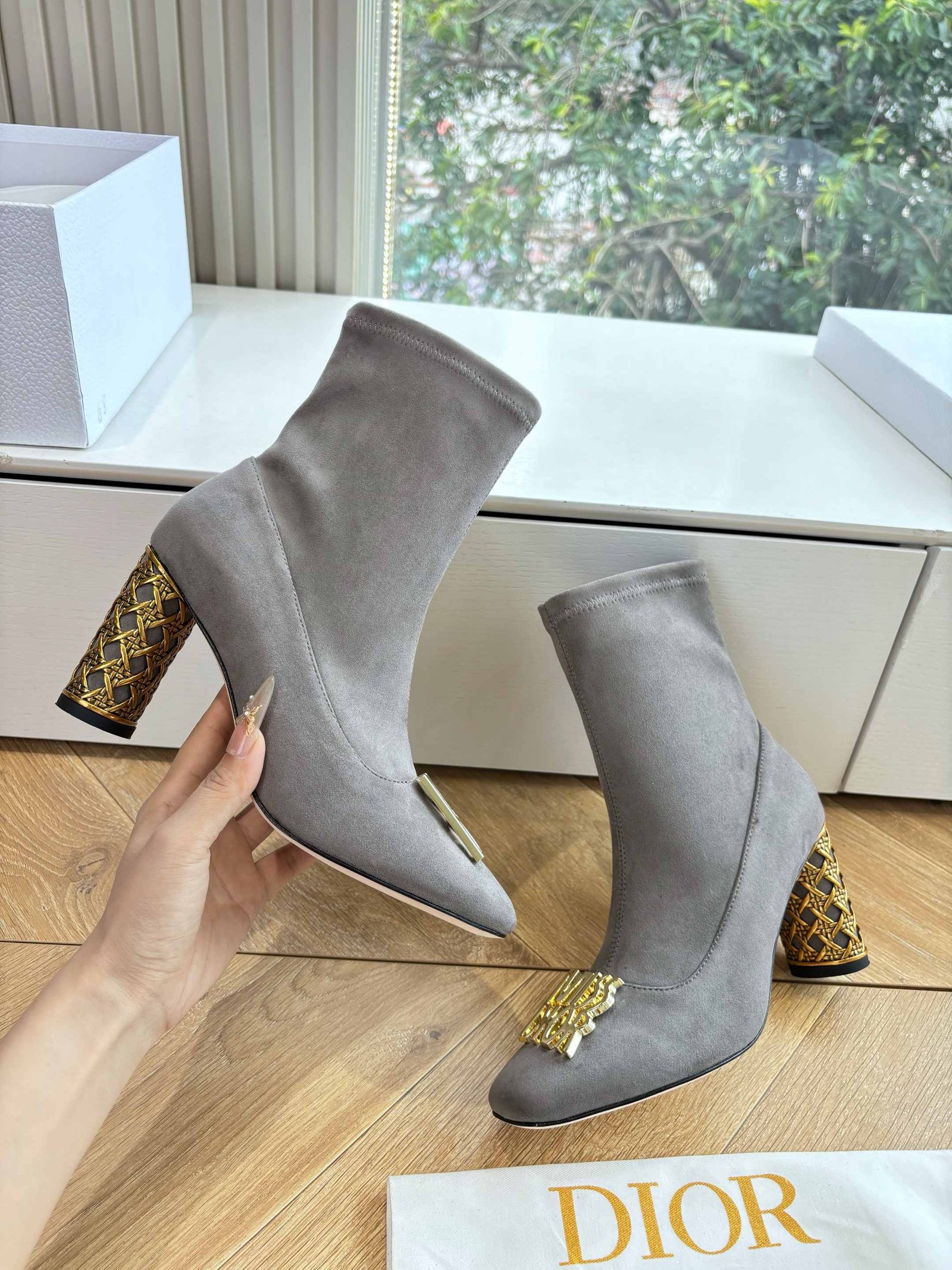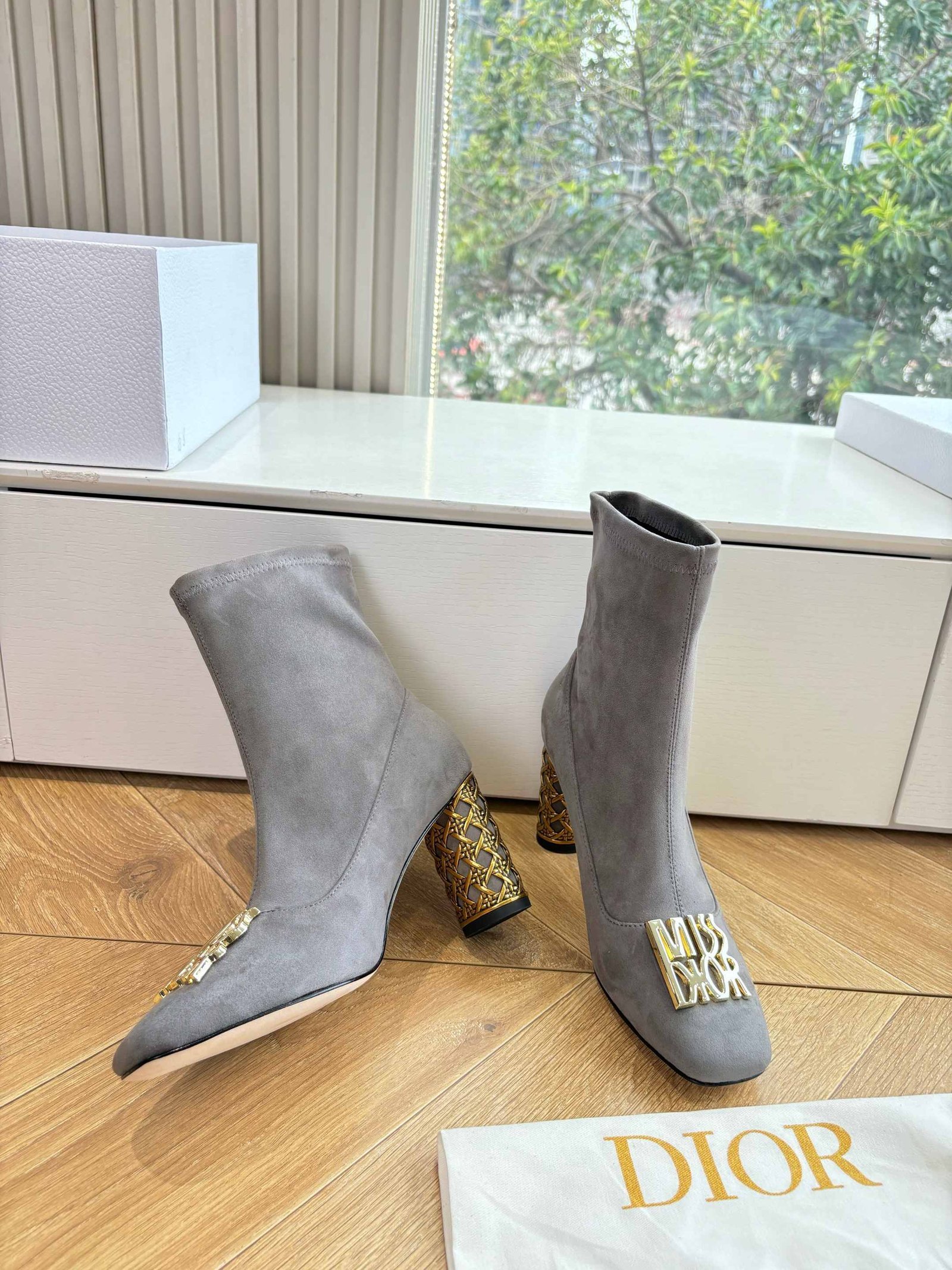 Dior Miss Dior Square Toe Sock Boot With Gold Heel Detail, 3/8.5cm
