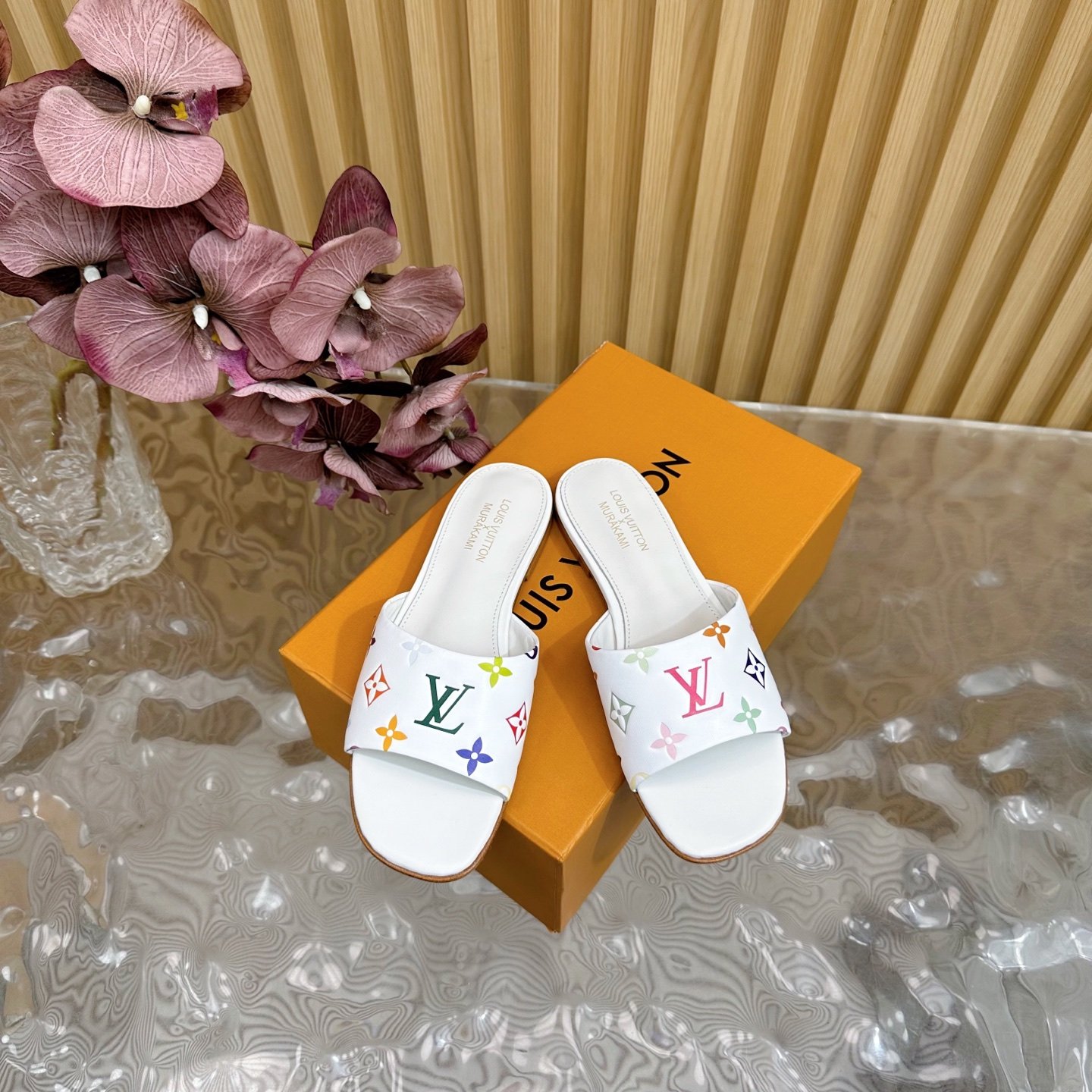 & Free Shipping- Series: Louis Vuitton x Murakami Multicolor Monogram Flat Slide
