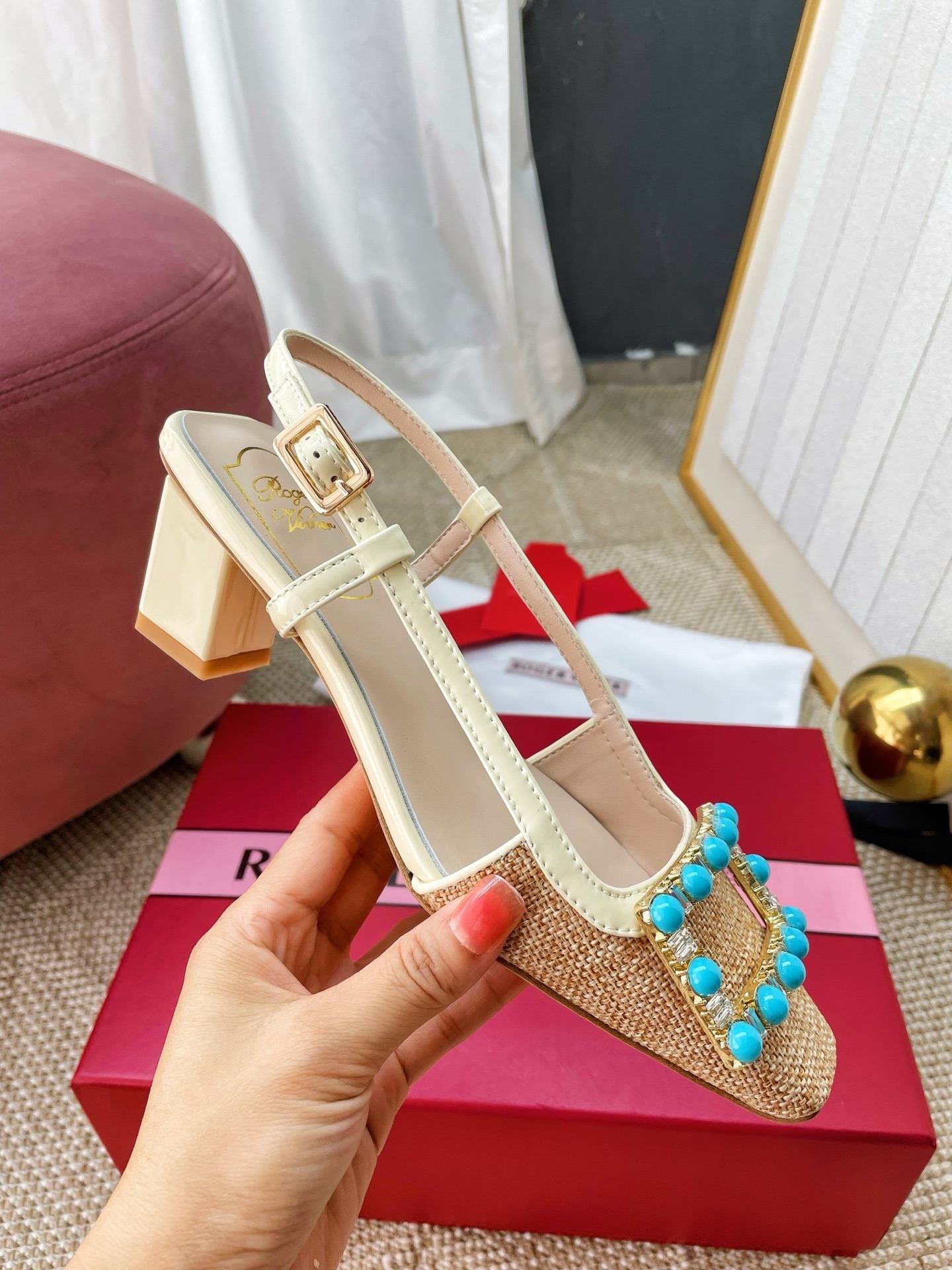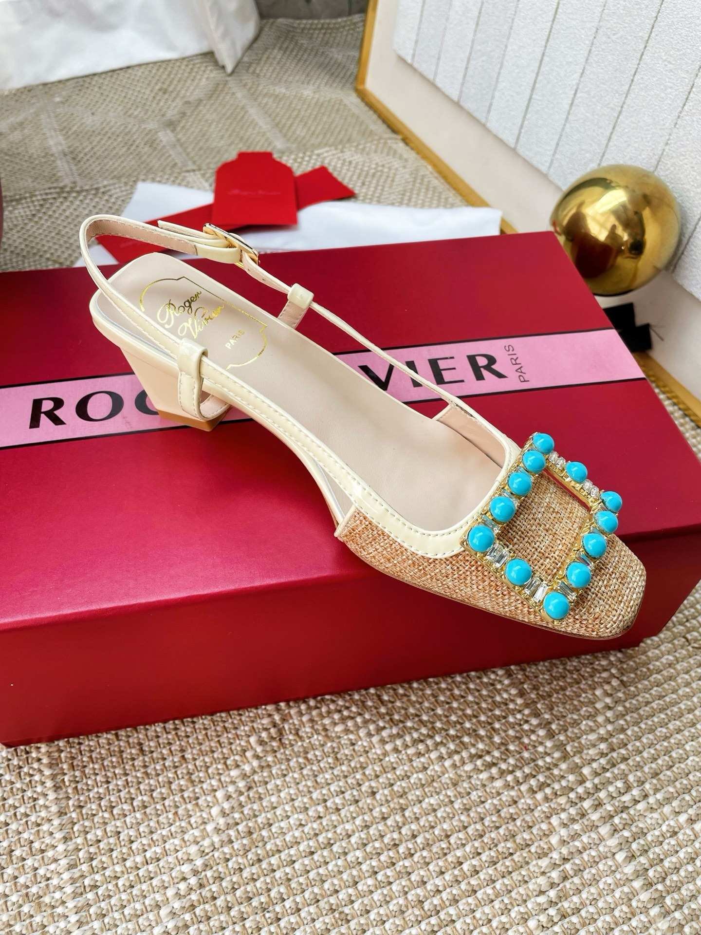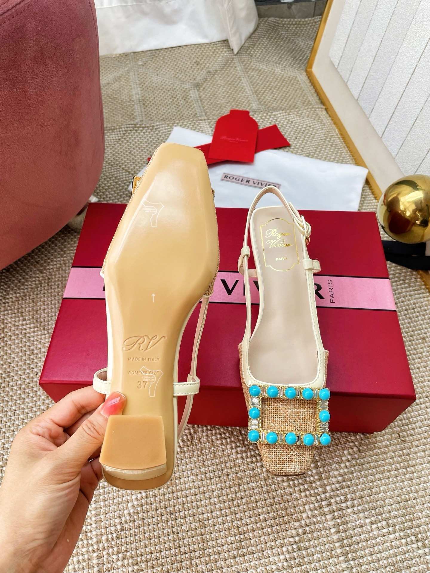 & Free Shipping- Series: Roger Vivier Square Toe Slingback Flat