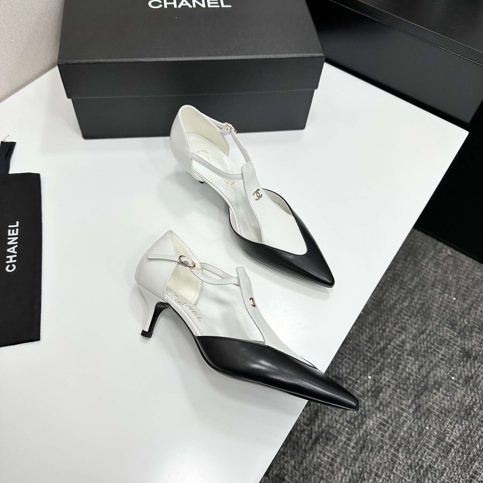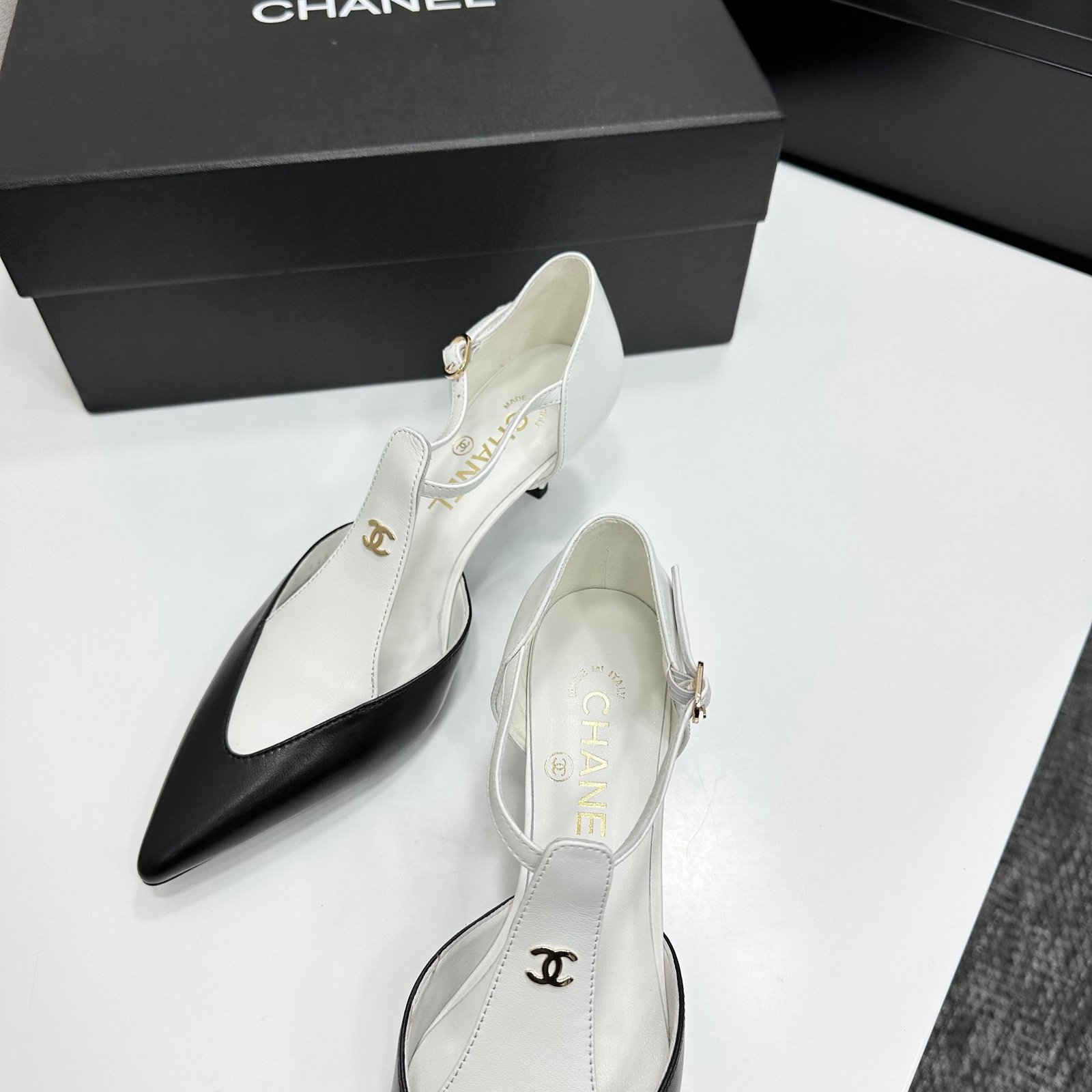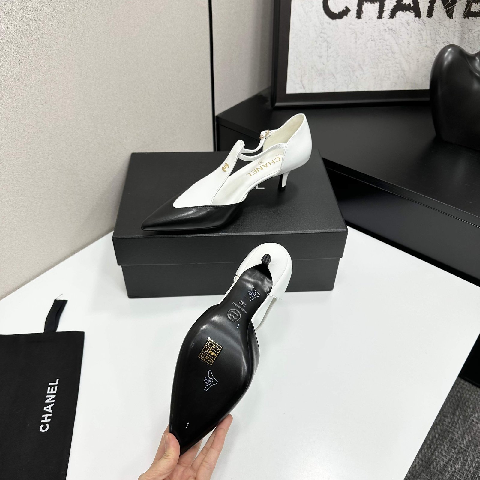 Two-Tone Leather Pointed-Toe Cutout Kitten Heel Pumps
